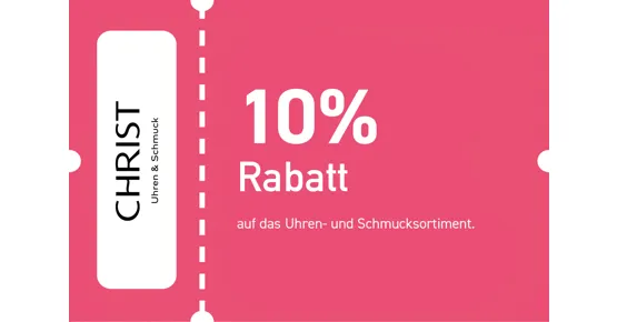 Ausgenommen Sonderbestellungen, Service- und Reparaturleistungen, Geschenkkarten sowie Swiss Made Uhrenmarken ausser CHRIST Swiss Made und KIDS by CHRIST. Nicht kumulierbar mit laufenden Aktionen.