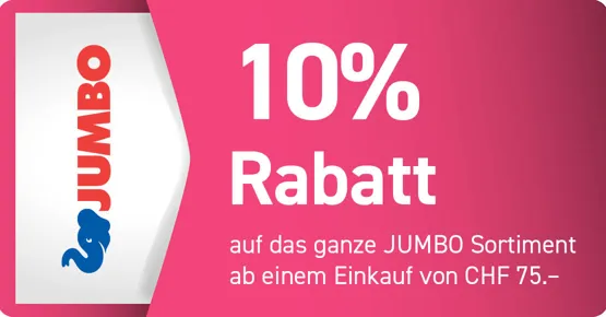 Auf das ganze JUMBO Sortiment ab einem Einkaufsbetrag von CHF 75.–.