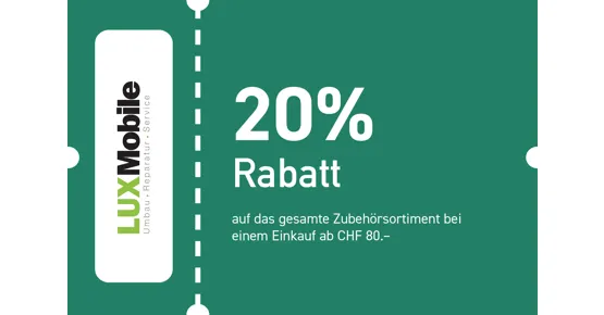 Auf das gesamte Zubehörsortiment bei einem Einkauf ab CHF 80.–. Nur einlösbar im Pilatusmarkt. Gültig vom 02.03.2026 – 02.04.2026.