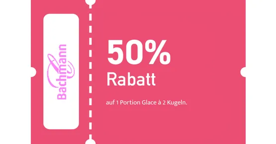 Auf 1 Portion Glace à 2 Kugeln. Nur einlösbar im Pilatusmarkt. Gültig vom 02.03.2026 – 02.04.2026.
