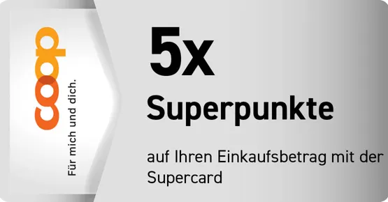 Bon an der Kasse abgeben und persönliche Supercard vorweisen. Bon nur einmal einlösbar. Nicht kumulierbar mit anderen Bons. Auf Ihren Einkaufsbetrag mit der Supercard.