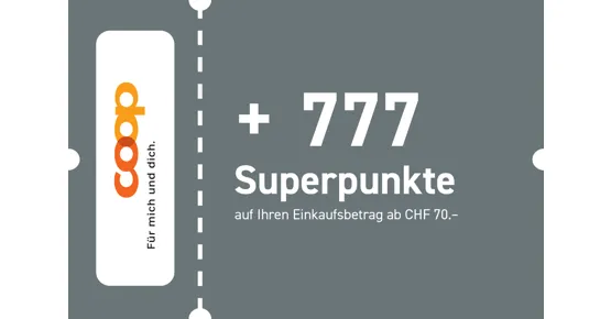 Nicht gültig für: Spirituosen/Aperitifs, Raucher - waren, Geschenkkarten/eVoucher, Erlebnis - boxen, Reka-Card, Vignetten, gebührenpflichtige Kehrichtsäcke, Gebührenmarken, Depot ge bühren, Leergut, Telefonkarten, Gesprächsguthaben, Lose, Lotto/Toto, Ticketverkauf, Zeitungen/Zeitschriften, Baby- Anfangsmilch, Tragtaschen, Inter netshop, eingemietete Shops.