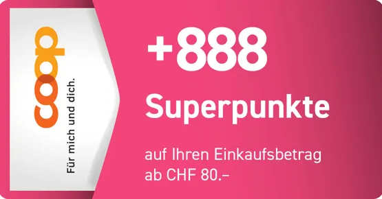 Nur in der Coop Supermarkt Filiale im Pilatusmarkt Kriens einlösbar. Bon an der Kasse abgeben und persönliche Supercard vorweisen. Bon nur einmal einlösbar. Nicht kumulierbar mit anderen Bons.