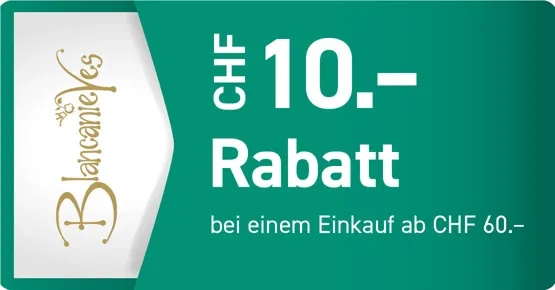 Bei einem Einkauf ab CHF 60.–. Nur in der Blancanieves-Filiale im Pilatusmarkt Kriens einlösbar. Gültig vom 25.08.2025 bis 11.10.2025.