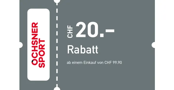 Nur einlösbar in deinem OCHSNER SPORT Store Pilatusmarkt Kriens. Nicht kumulierbar mit anderen Aktionen. Nicht gültig auf Mietware, Serviceleistungen, Geschenkkarten und Direktbestellungen. Gültig vom 02.03.2026 – 02.04.2026.